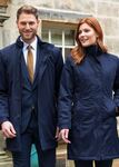 100% Waterproof Polyester. 5 button fly front with zip, showerproof, centre vent, 2 outer welt pockets, quilted lining with 2 internal pockets, collar incorporating concealed hood, cuff with tab detail centre back length @ 40R = 90cm